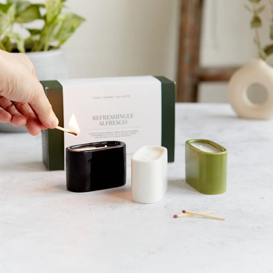 Treat your loved ones to our luxurious multi award winning ceramic tea light gift sets. Infused with a delicate scent, these repurposable sets make the perfect gift for any special occasion. Experience the elegance and sophistication of our exclusive product, perfect to add a touch of luxury to any room. To reuse them either pop a standard tea light into the cleaned out ceramic vessel or repurpose them into something entirely different!